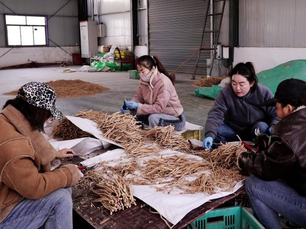 在另一车间内,工人们正将晒制好的党参进行切段处理,预备将4吨党参段如期发往上海。